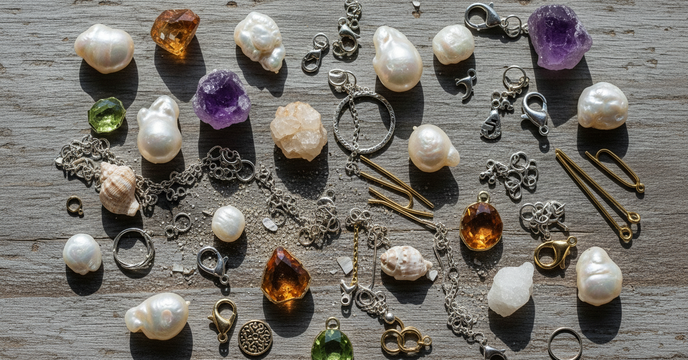 Handcrafted Baroque Pearl & Brass Wire Bracelet